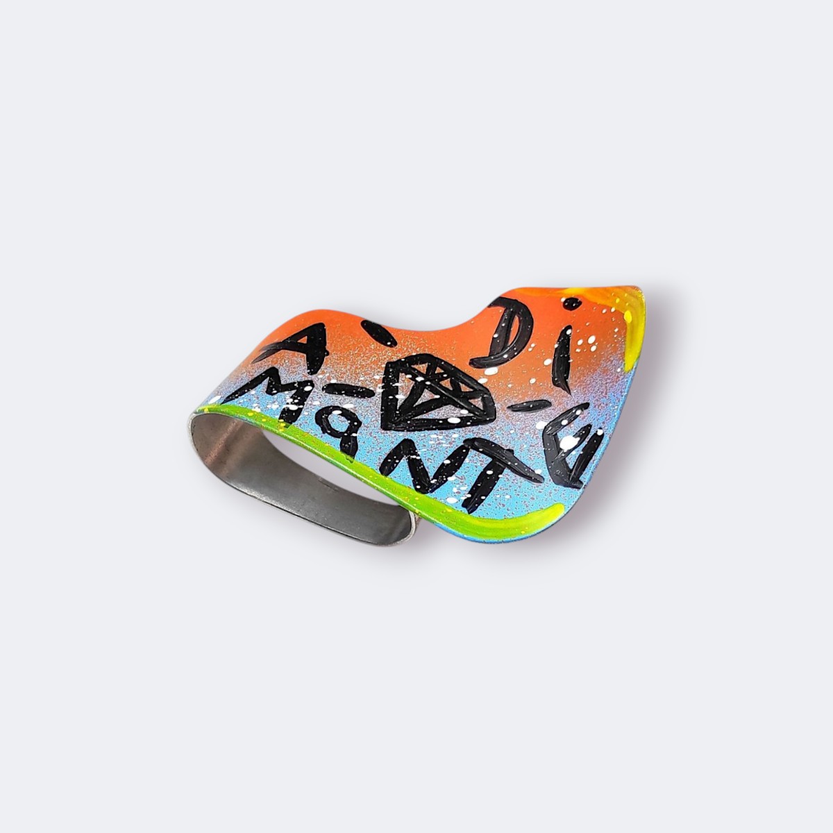 Adjustable double ring. Made of aluminum, acrylic paint, spray paint.