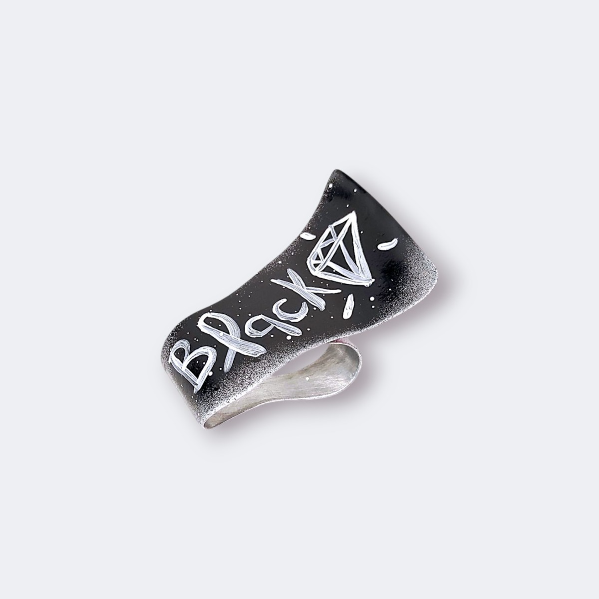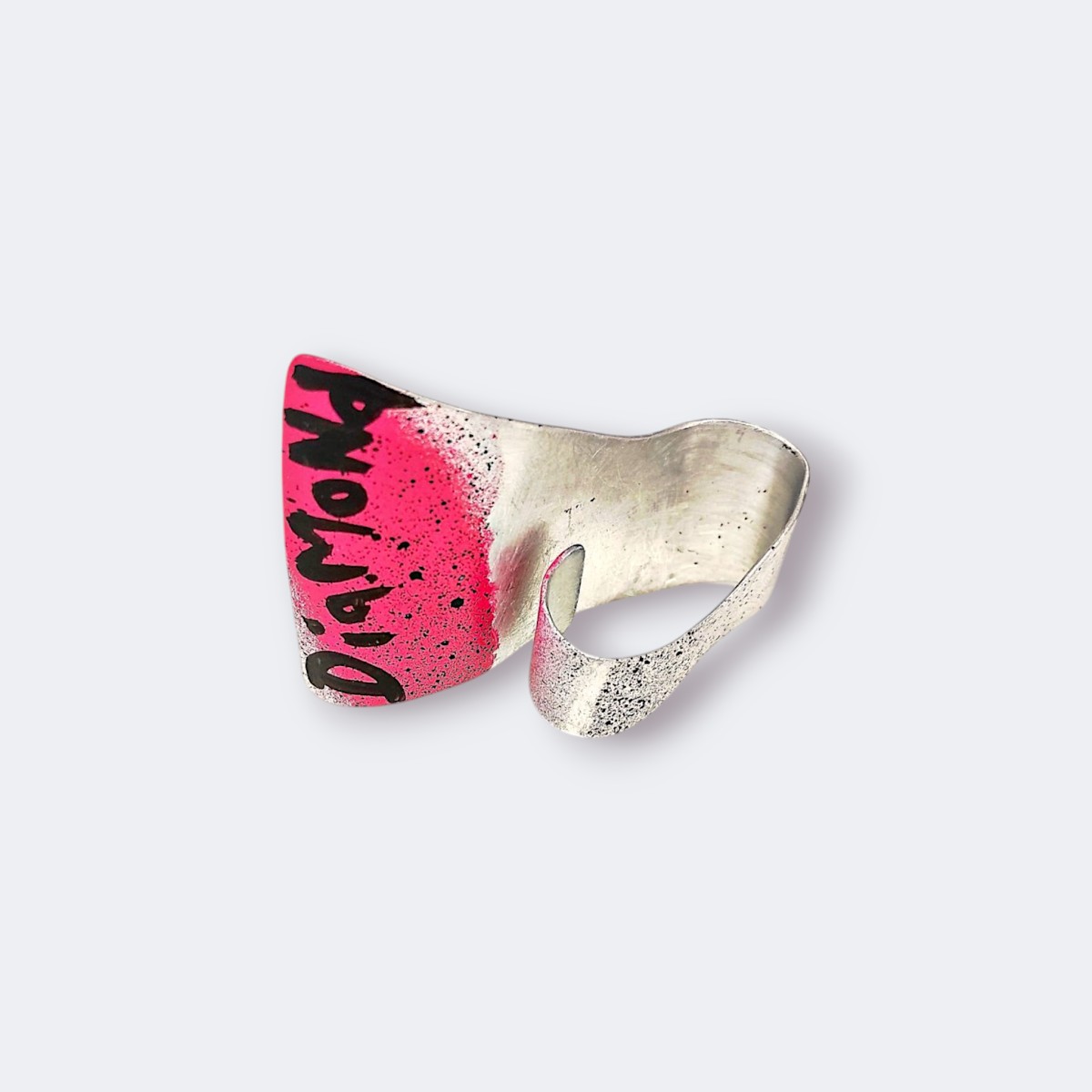 Adjustable double ring. Made of aluminum, Acrylic paint, Spray paint.