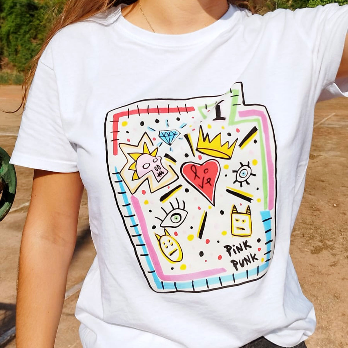 Care: Hand wash or machine cold, máx. 30º. Inside out, hang to dry, do not tumble dry, do not dry clean, you can iron without steam by covering the printed and painted areas with a thin cloth or fabric.